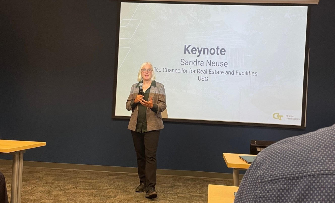 USG Vice Chancellor of Real Estate and Facilities Sandra Neuse was the keynote speaker. “I’m thrilled that the Campus Energy and Resiliency Group has come together organically to share their collective expertise in energy efficiency and sustainability,” she said. “Their focus on establishing energy efficiency targets and collaborating with other institutions across the USG will not only avoid costs — it is an investment in the future and a model for our students, who will be the next generation of leaders.”